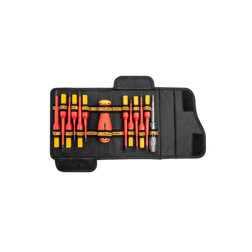 Набор отверток Tolsen диэлектрических, сменные стержни 13 шт, тканевый пенал (38017)