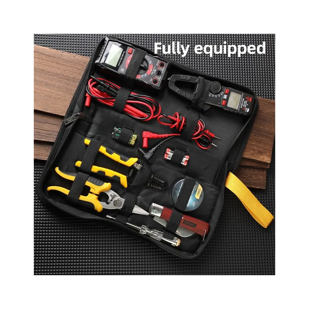 Набор дополняется прочной изоляционной лентой для защитных работ, что повышает безопасность при манипуляциях с проводкой. Все инструменты аккуратно упакованы в удобную тканевую сумку, что делает этот комплект идеальным для мобильной работы, предоставляя возможность всегда иметь нужные инструменты под рукой.