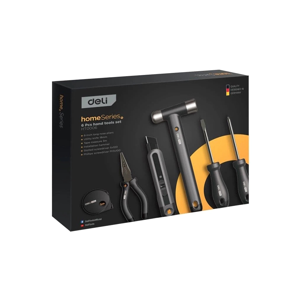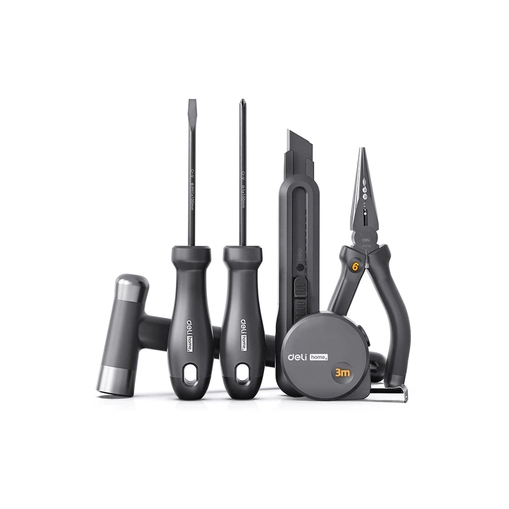 Набор инструментов Deli Home Series, 6 шт. (EHT0006) — это ваша надежная поддержка для всех домашних задач и DIY-проектов. Этот универсальный комплект разработан специально для комфортного использования дома, объединяя в себе все необходимое для мелких ремонтов и работ по дому. В комплект входят тонкогубцы, незаменимые для точных манипуляций с мелкими деталями, а также мощный молоток, который легко справится с задачами любой сложности. Две отвертки с различными типами шлицов — крестообразный Phillips (PH) и плоский (SL) — обеспечат универсальность в работе с различными видами крепежа.