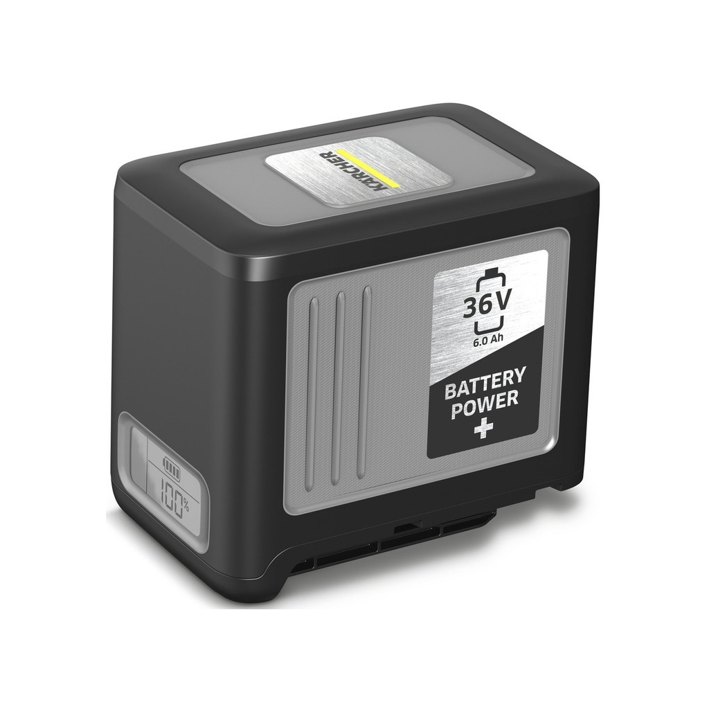Мощный съемный литий-ионный аккумулятор Battery Power+ с напряжением 36 В устанавливается в аппараты Karcher на 36-вольтной аккумуляторной платформе. Высокая емкость (6 Ач) обеспечивает долгую работу от одного заряда. Характеристики