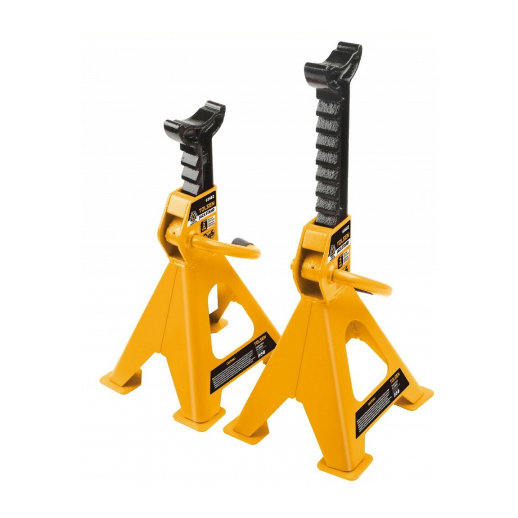 Надежные и устойчивые автомобильные подставки Tolsen — необходимый аксессуар для безопасного проведения ремонтных и технических работ. Изготовлены из прочной стали и выдерживают нагрузку до 2 тонн. Регулируемая высота (от 265 до 430 мм) подходит для различных типов автомобилей.