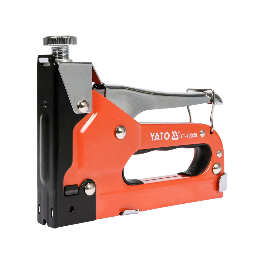 Степлер YATO предназначен для крепления материала к поверхностям из дерева, ДВП, гипсокартона, пластика с использованием прямоугольных скоб размером 4-14 мм, полукруглых скоб – 10-12 мм и гвоздей – 10-14 мм. Металлический корпус и ручка обеспечивает удобство в работе.