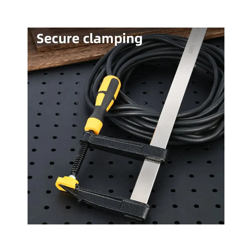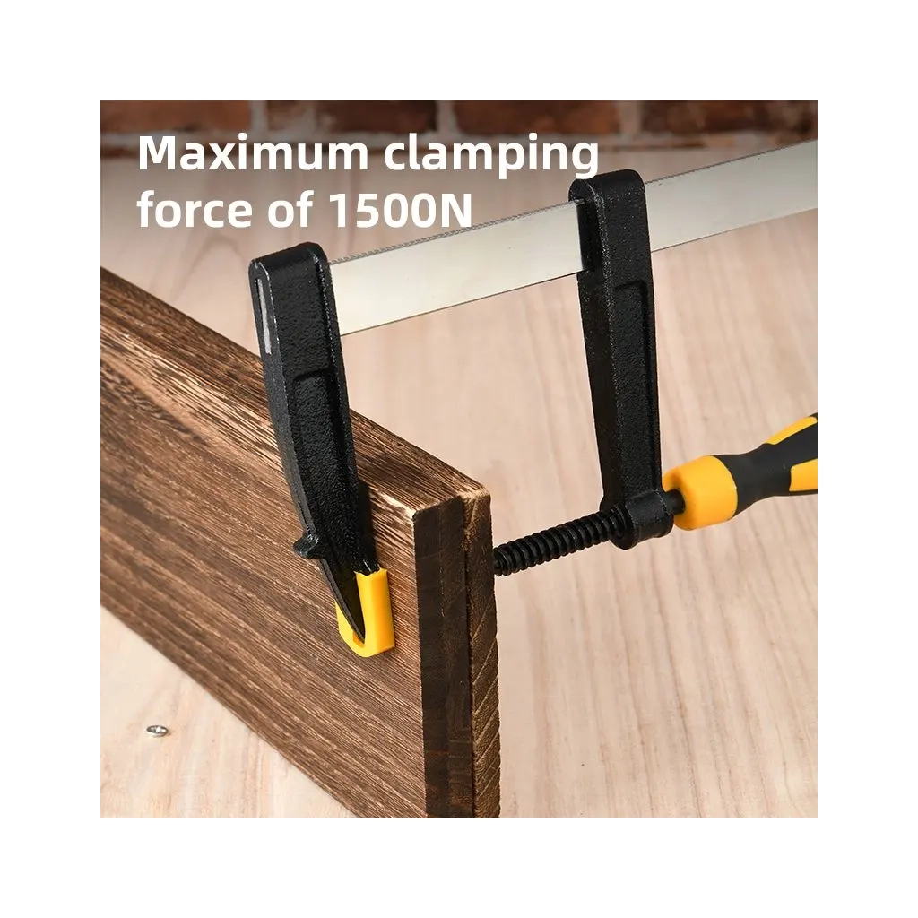 Надёжная и прочная — струбцина F типа (50 x 250 мм) обеспечивает усилие зажима до 1000 Н. Линейка толщиной 3,5 мм и шириной 5 мм вместе с резьбовым винтом диаметром 9,5 мм гарантируют стабильность и долговечность для точных работ. Упакована на картонной карточке — практичный инструмент для столярных работ, сборки и профессионального применения.