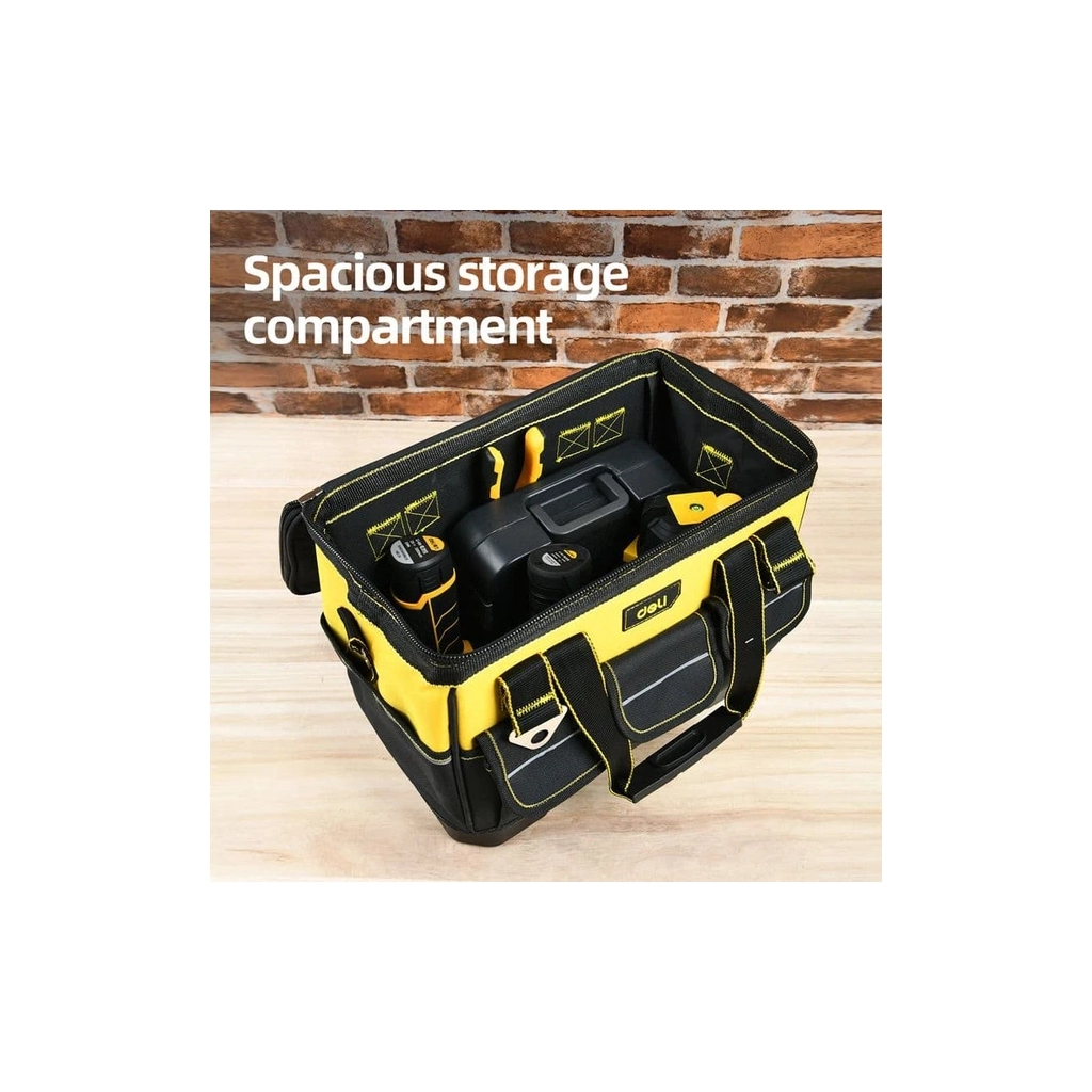 Широкая сумка для инструментов 16" из плотного материала 600D — выдерживает до 30 кг нагрузки. Имеет 14 карманов для удобной сортировки и карту с подвесом для выкладки. Надежная, практичная и готовая к работе. Характеристики