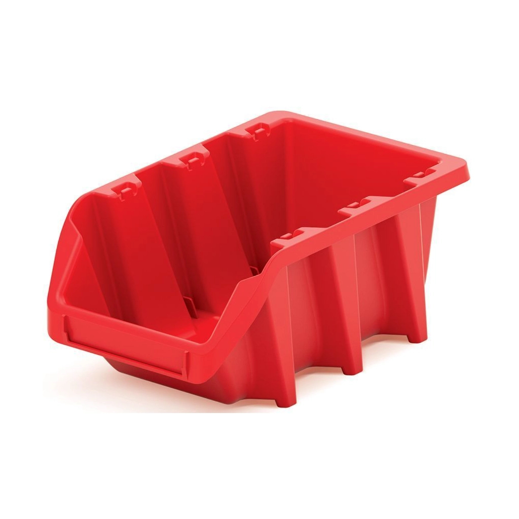 Емкость для хранения имеет корпус, изготовленный из прочной полимерной смеси, красного цвета.