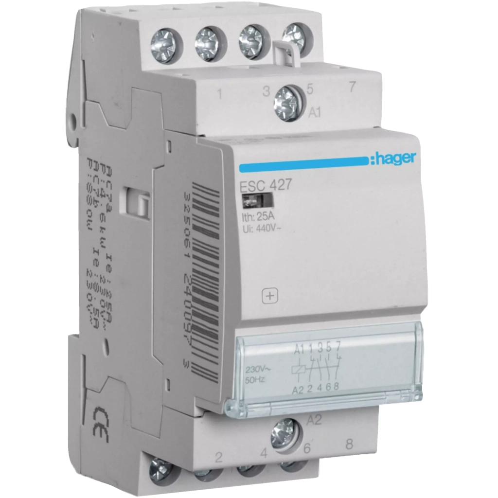 Модульный контактор Hager предназначен для коммутации активных и слабоиндуктивных нагрузок в системах управления различными технологическими процессами, кондиционирования и вентиляции, сетями освещения.