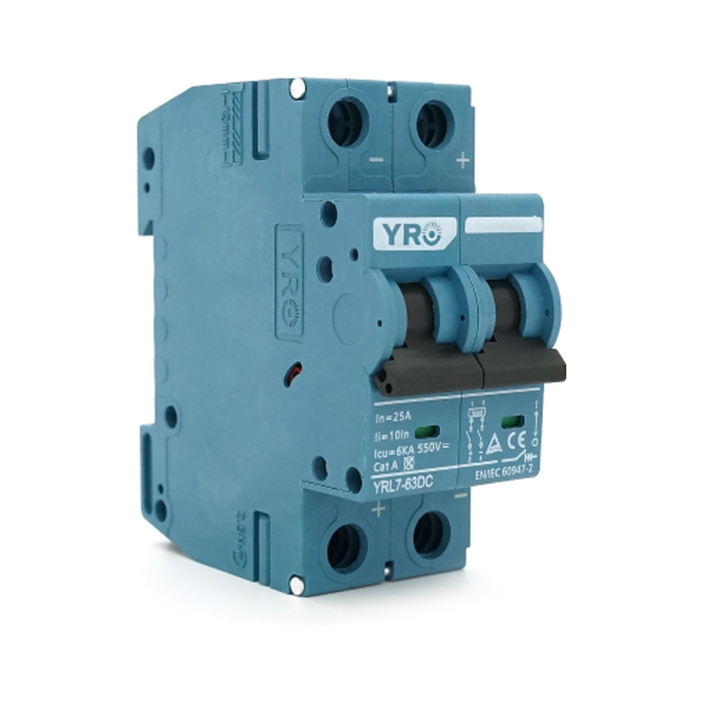 Автоматический выключатель постоянного тока YRO YRL7-63DC 2P 25A DC550V — это надежный аппарат защиты, предназначенный для эксплуатации в цепях постоянного тока. Модель обеспечивает комплексную защиту электрических линий и подключенного оборудования от токов короткого замыкания и продолжительных перегрузок.