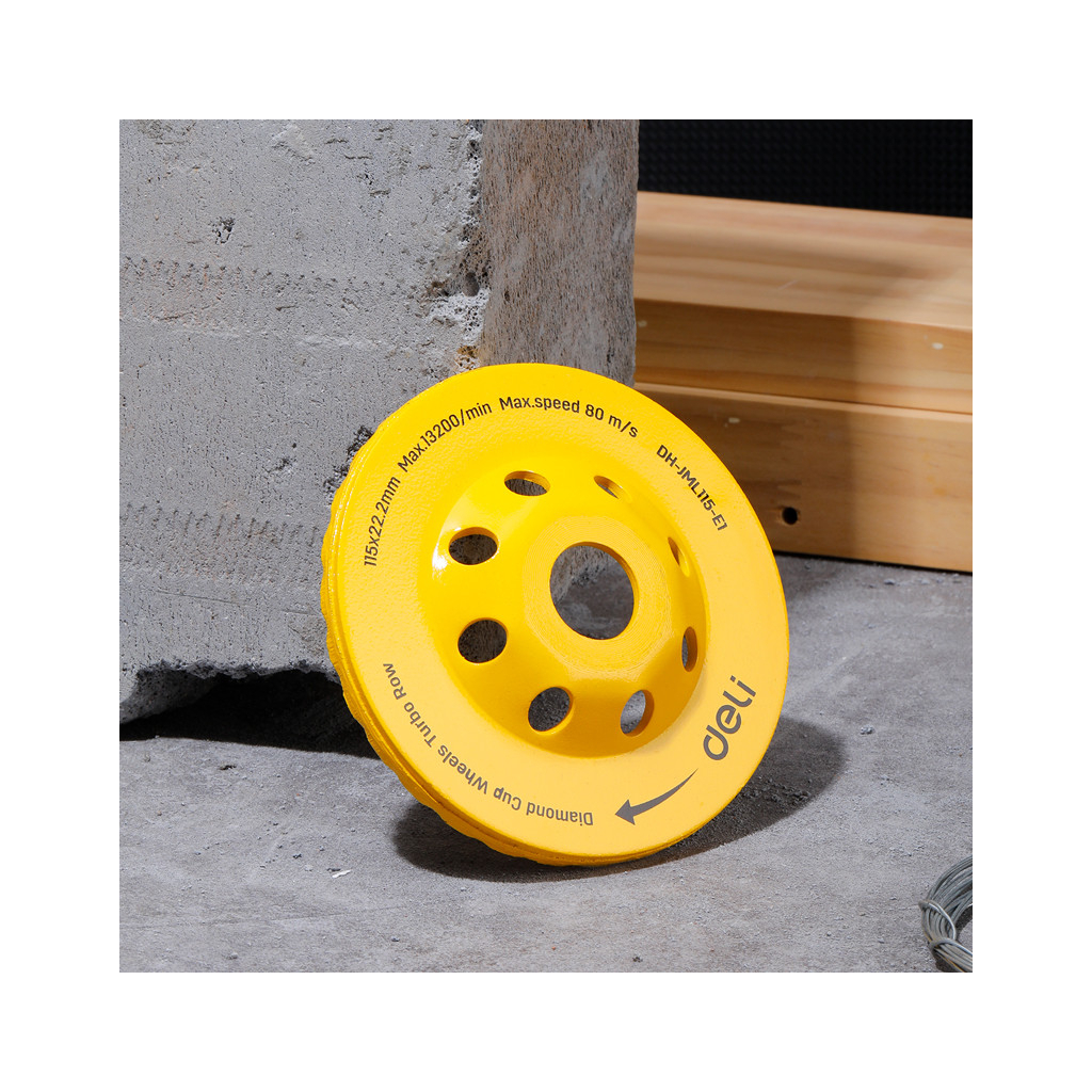 Шлифовальное алмазное колесо 115 мм. Шлифовальное колесо с алмазной чашкой диаметром 115 мм подходит для обработки бетона, камня и кладки. Обеспечивает эффективное снятие материала, равномерную шлифовку и длинный ресурс работы благодаря крепкой алмазной кромке.