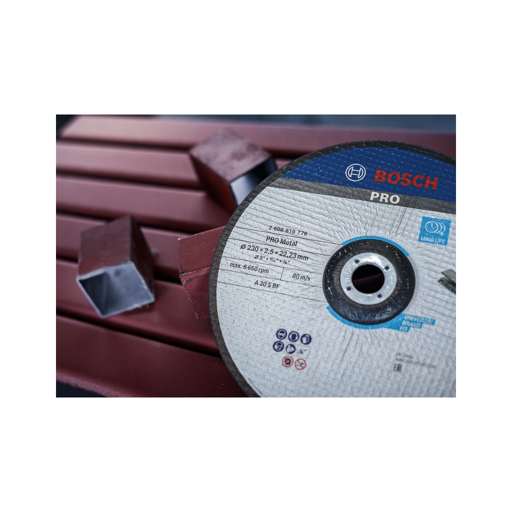 Стандартный отрезной диск по металлу надежно разрезает металл. Отрезные диски Bosch соответствуют максимальным требованиям безопасности, таким как EN 12413. Характеристики