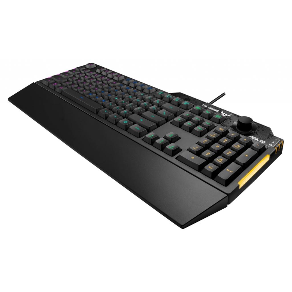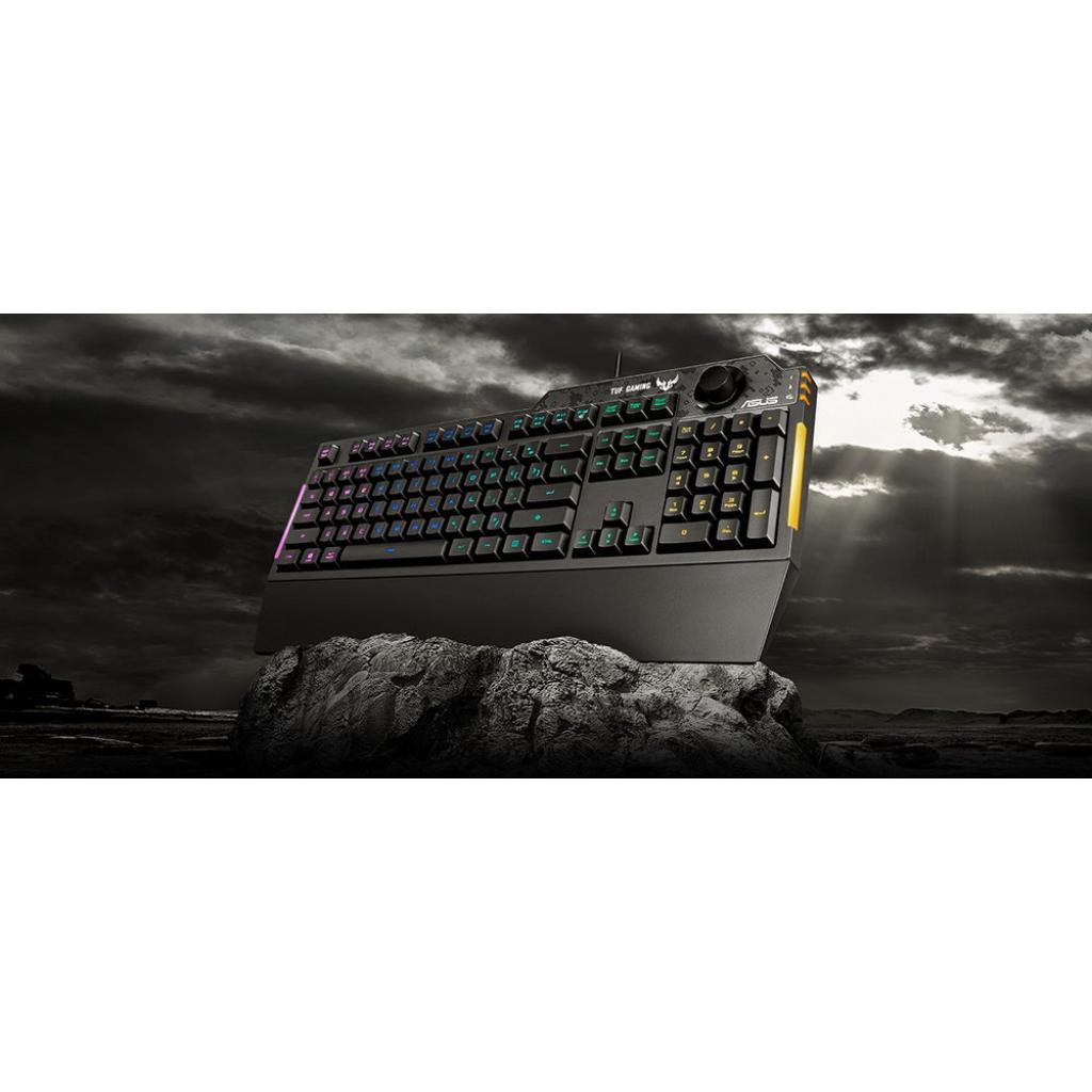 ASUS TUF Gaming K1 – это игровая клавиатура, сочетающая бескомпромиссные характеристики с повышенной долговечностью конструкции. Ее мембранные переключатели, отличающиеся бесшумной работой и отличным тактильным откликом, упакованы в прочный корпус, способный пережить попадание до 300 мл жидкости. Клавиатура оснащена удобным регулятором громкости звука, съемной подставкой под запястья и настраиваемой подсветкой с дополнительными боковыми иллюминационными полосками. Характеристики