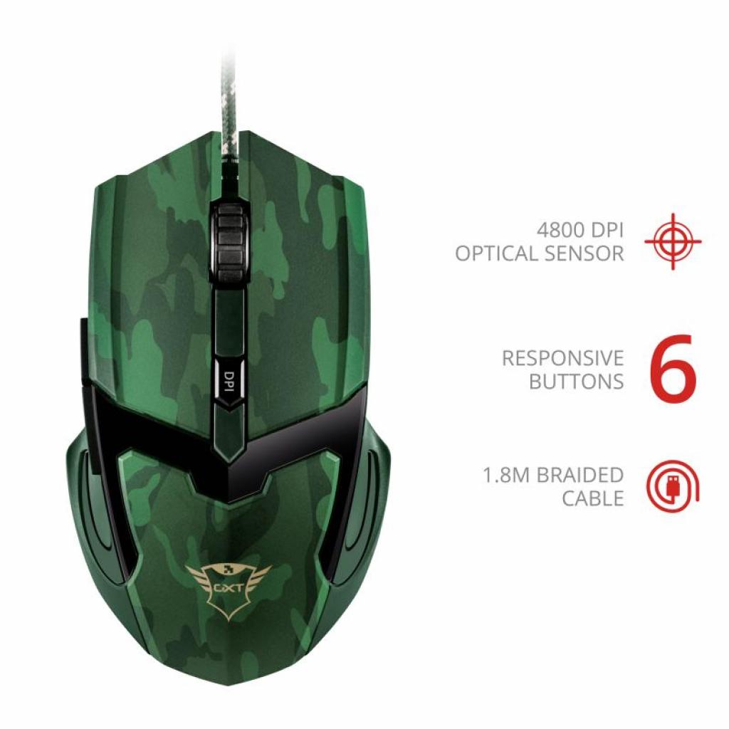 Мышка Trust GXT 101D - компактная игровая мышь 4800 DPI (6 кнопок) с подсветкой разных цветов. Особенности: кнопка выбора скорости (600-4800 DPI). Верхние прорезиненные накладки для удобного удерживания мыши. Логотип с подсветкой, меняющей цвета. Эргономичный и удобный дизайн.
