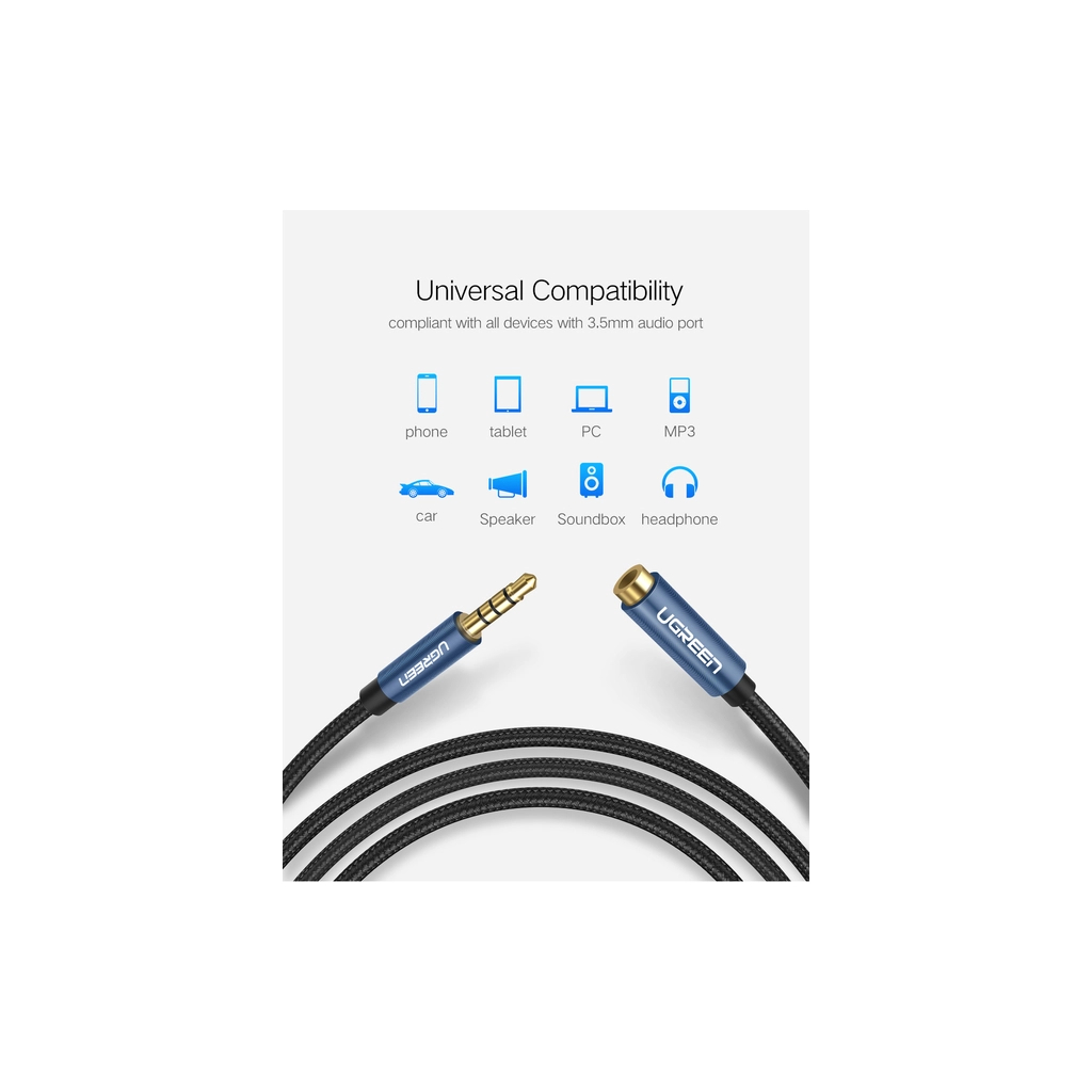 Расширьте свой порт AUX 3.5 мм Удлинительный аудиокабель Ugreen 3.5 мм расширяет соединение между вашим iPhone, iPod, MP3-плеерами, смартфонами, планшетами или любыми другими устройствами, оснащенными 3.5-мм дополнительным портом, с вашими наушниками, наушниками, динамиком, автомобильной стереосистемой или системой домашнего кинотеатра и т. д.