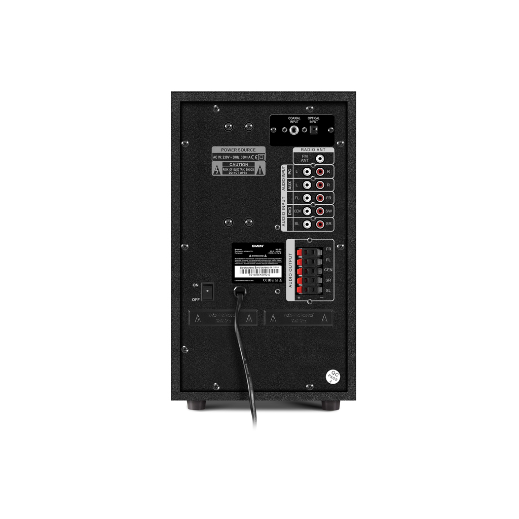 Кроме того, SVEN HT-210 оснащена встроенным радио и может воспроизводить музыку c USB flash и SD card.