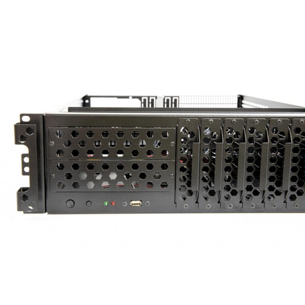 - Укомплектован 8 корзинами для легкого установки жестких дисков формата 3,5". Позволяет снять жесткий диск без разборки сервера;