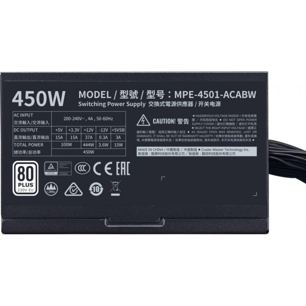 Cooler Master 450W MPE-4501-ACABW - надежный компьютерный блок питания. Изготовлен он из качественных материалов и компонентов, чтобы быть уверенным в хорошей работоспособности блока, на протяжении длительного времени. Охлаждается при помощи активного вентилятора. Блок оснащен различными разъемами, что позволит питать различные компоненты системы.