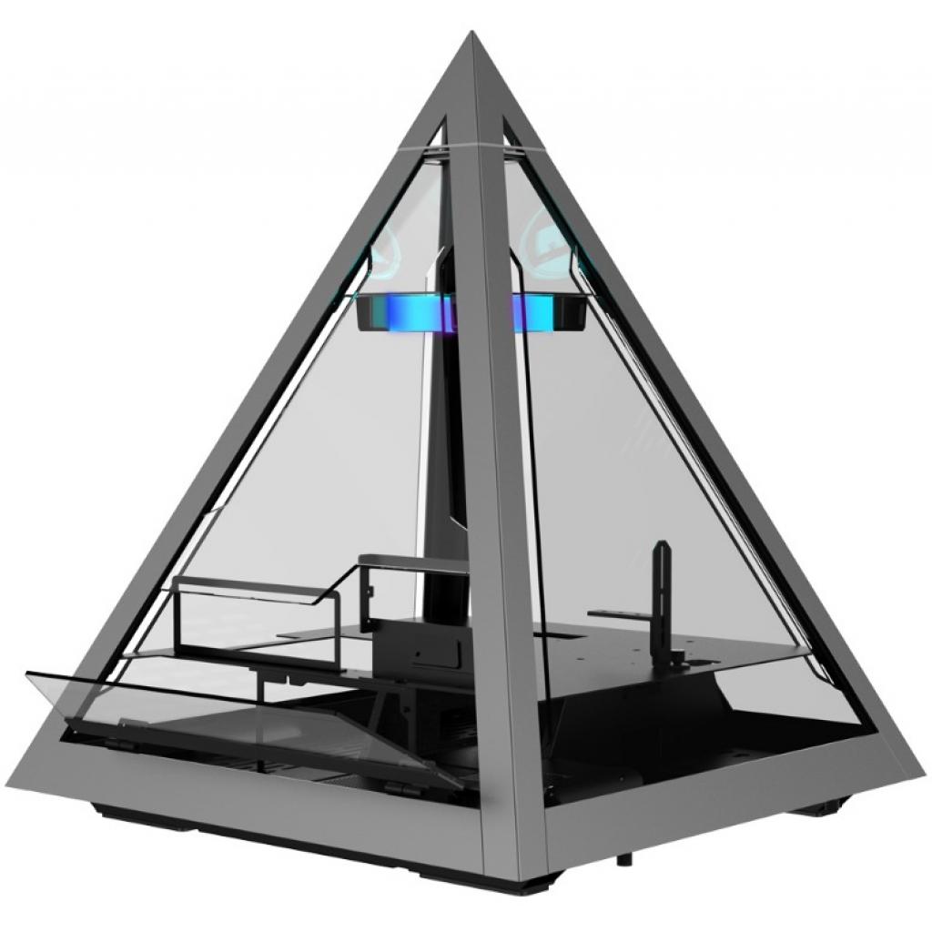 Форма пирамиды примечательна сама по себе. Но это ещё не всё: если пользователю надоест наблюдать за происходящим в корпусе, он может перевернуть пирамиду и монтировать её в опциональную подставку, получив в результате своего рода стол.