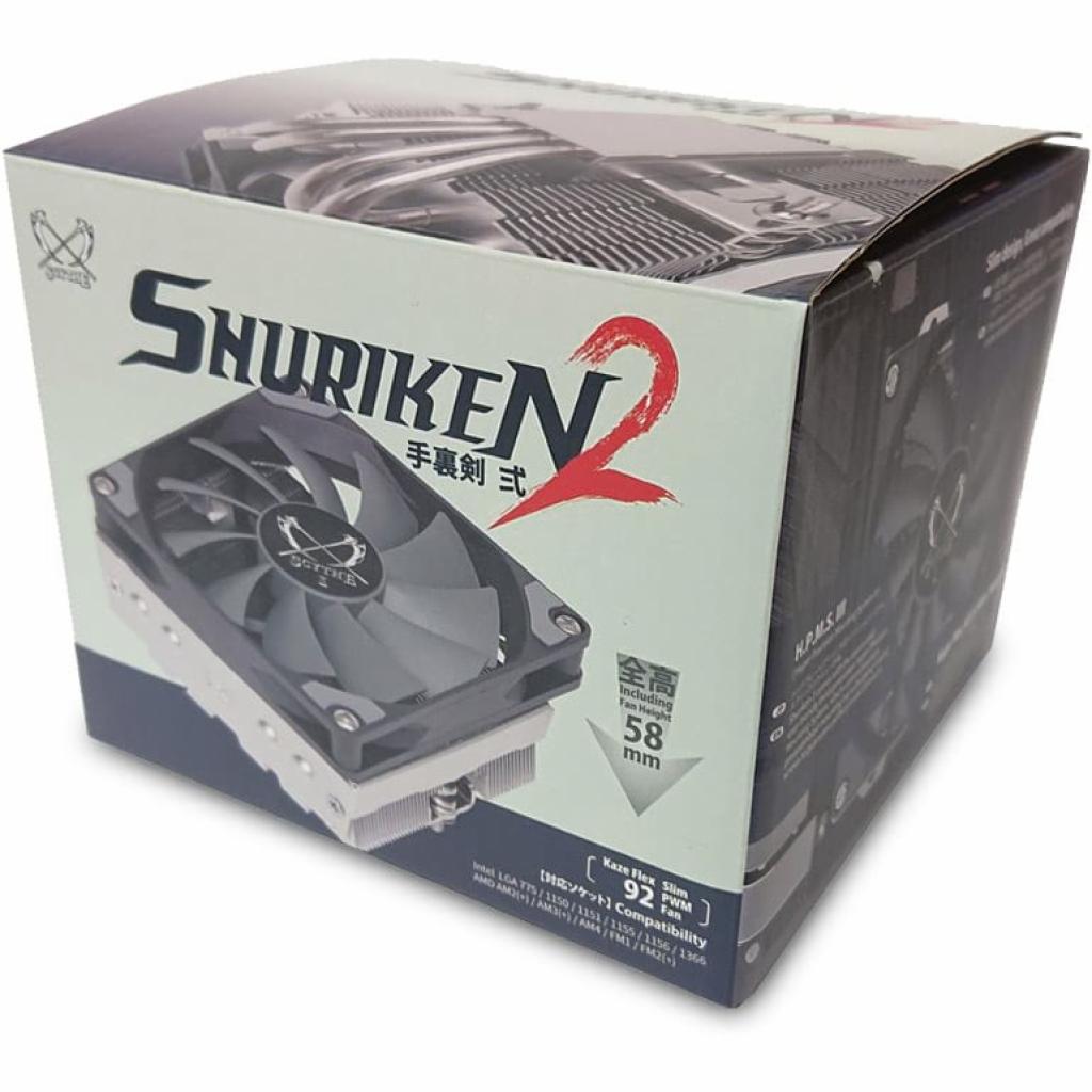 Компания Scythe представила низкопрофильную процессорную систему охлаждения Shuriken 2 SCSK-2000. Высота новинки — всего 58 мм (с вентилятором), что делает ее подходящей для компактных настольных систем на платах типоразмера mini-ITX. При этом SCSK-2000 может справиться с довольно высокой тепловой нагрузкой — охладитель подходит для процессоров с TDP до 100 Вт.