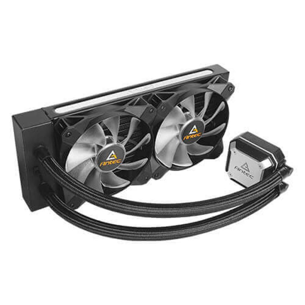 Водоблок с медным основанием совмещен с помпой. По задумке производителя, этот вентилятор обеспечит охлаждение регуляторов напряжения в подсистеме питания, расположенных рядом с процессором. Компактный блок помпы не мешает модулям памяти, даже если они оснащены большими радиаторами. Скорости помпы и вентиляторов на радиаторах регулируются с помощью ШИМ. СЖО Antec Neptune 240 ARGB совместимы со всеми распространенными разъемами AMD и Intel.