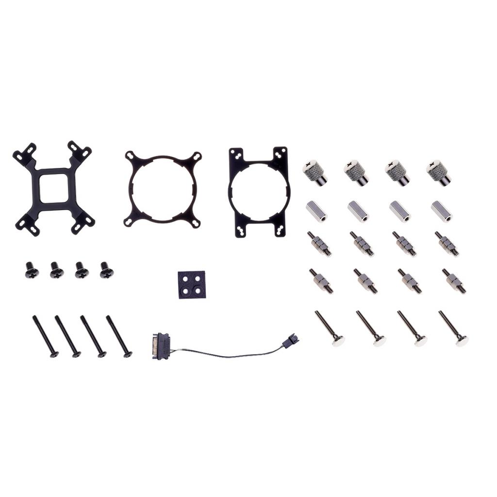 Комплектация: кулер процессорный, водоблок, крепежи к материнке под разные сокеты, винты, термопаста, инструкция.