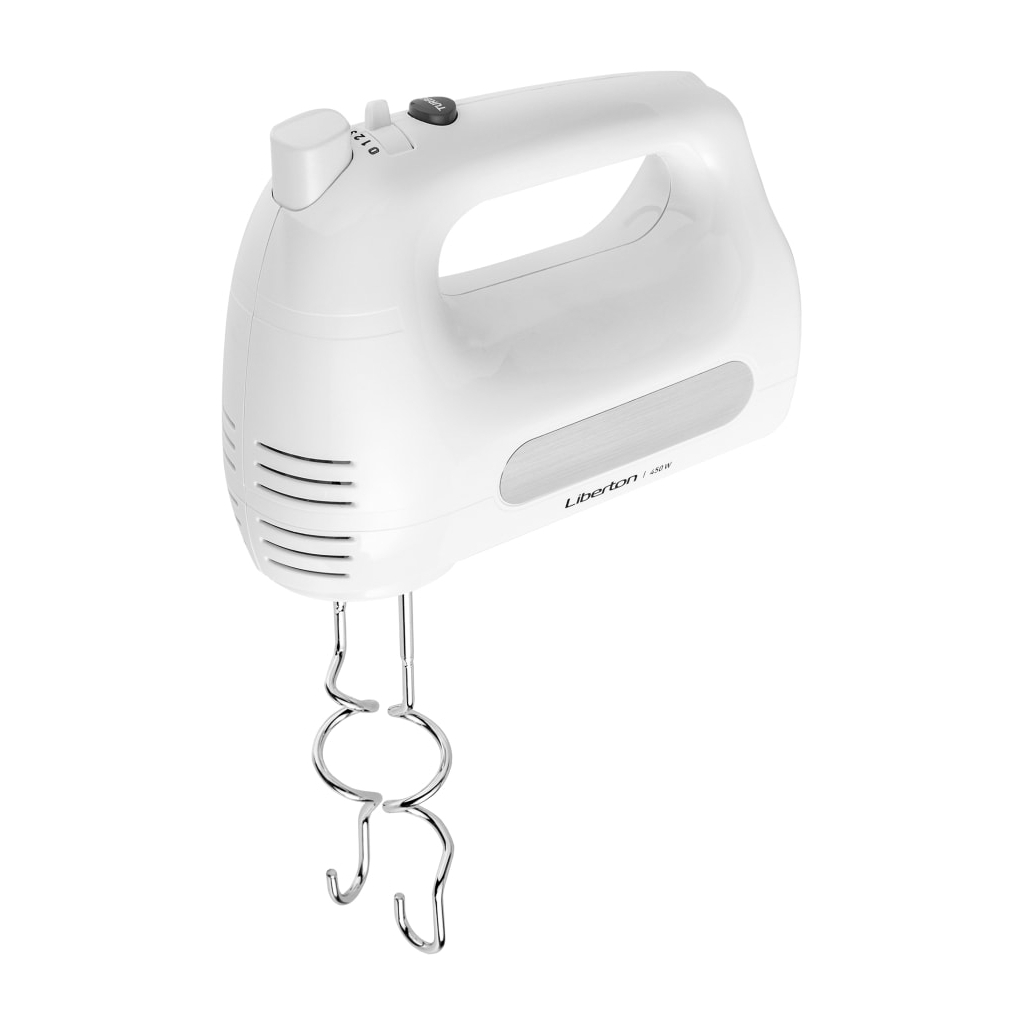 Мощность: 450 Вт; Кол-во скоростей: 6; Режим "Турбо": да; Насадки: венчики, крючки для теста; Материал насадок: хромированная сталь; Кнопка извлечения насадок: да; Материал корпуса: ABS пластик; Длина шнура: 0,9 м; Размер изделия: 19х8х15 см; Цвет: белый.