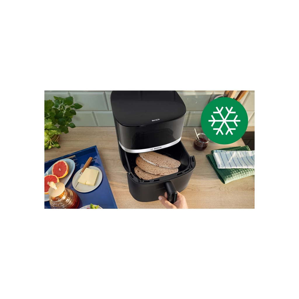 Мультипечь Bosch Serie 6 MAF462B0 – это современный кухонный прибор, объединяющий высокую производительность, удобство и стильный дизайн. Благодаря технологии быстрой циркуляции горячего воздуха она обеспечивает равномерное приготовление блюд со всех сторон, создавая аппетитную золотистую корочку снаружи и сохраняя сочность внутри. Диапазон температур от 40°C до 200°C в сочетании с двойными нагревателями позволяет быстро готовить разнообразные блюда, используя минимальное количество масла или без него. Большая чаша объемом 6.1 л подходит для приготовления до четырех порций за раз, а 7 автоматических программ (для картофеля фри, мяса, птицы, рыбы, овощей, кексов и булочек) делают процесс приготовления максимально простым и удобным.
