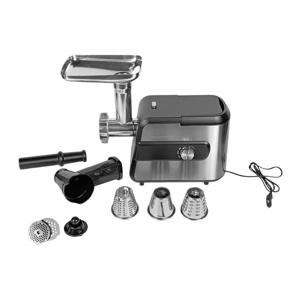 Мясорубка Grunhelm AMG200SS – это современное и функциональное устройство, которое должно находиться на оснащении любой кухни. Благодаря 3 решеткам с отверстиями разного диаметра измельчит не только мясо, но и другие продукты питания. Мясорубка оснащена двигателем мощностью 2000 Вт, что обеспечивает быстрое и эффективное измельчение продуктов. Более того, с помощью дополнительных аксессуаров, имеющихся в комплекте, мясорубка пригодится для измельчения овощей или приготовления колбасок и кеббе.