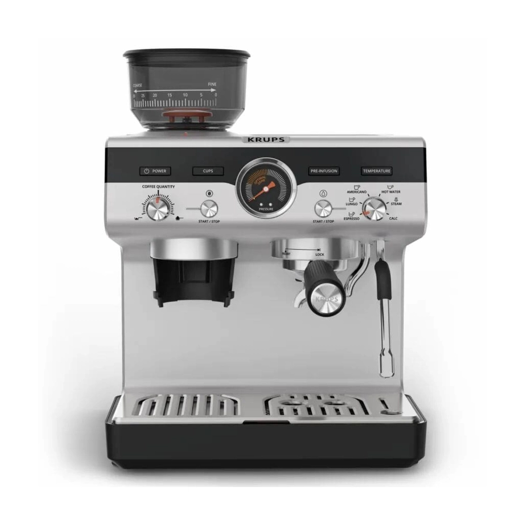 Krups Precision+ XP804T10 – элегантная рожковая кофеварка со встроенной кофемолкой, сочетающая точность и удобство. Мощность 1550 Вт и давление 15 бар обеспечивают насыщенный аромат и густую кремовую пенку. Благодаря ручному капучинатору можно легко приготовить кофе с нежной пеной. Объем резервуара 3.5 л позволяет готовить несколько порций подряд, а регулировка температуры гарантирует отличный вкус каждого напитка.