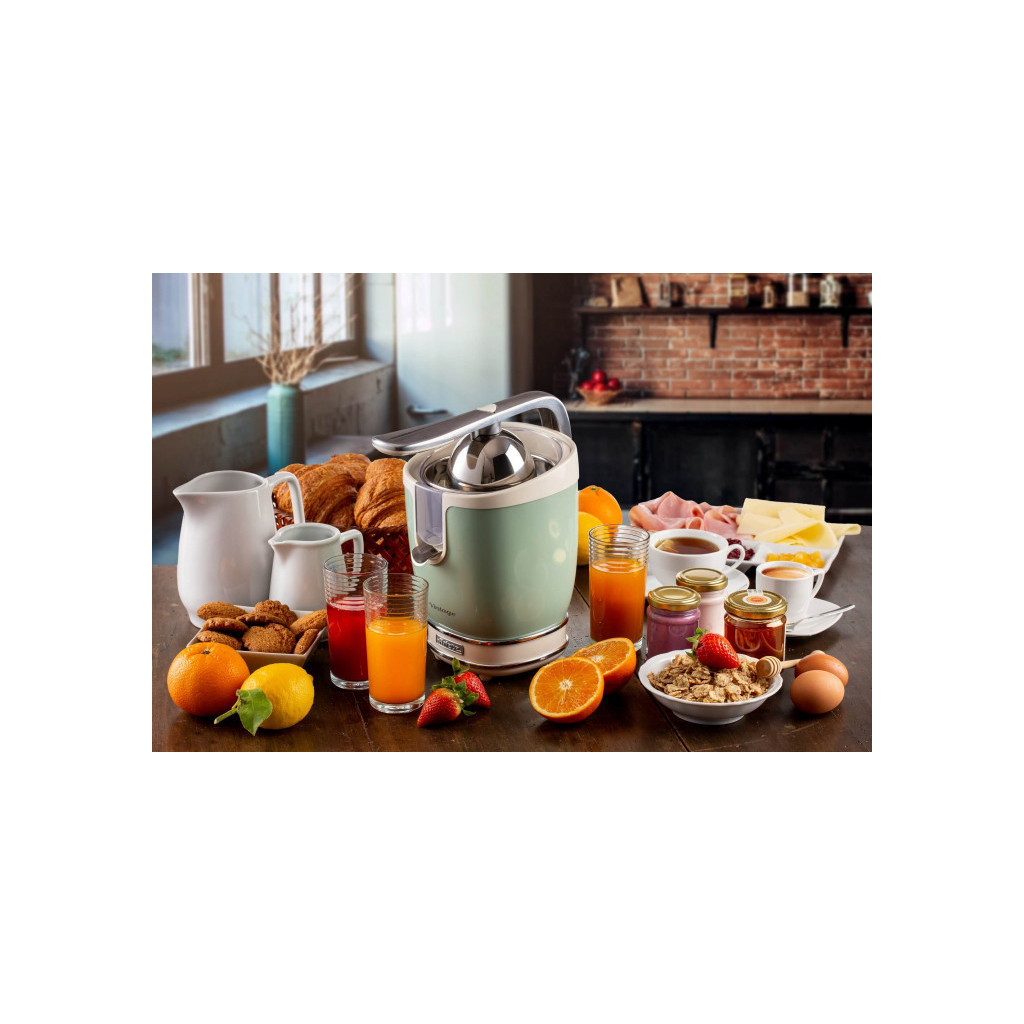 Апельсиновый сок на завтрак идеально подходит для наполнения витамином С, минеральными солями и энергией. С электрической соковыжималкой Ariete Vintage у вас будет мощная и бесшумная соковыжималка, которая одновременно придаст вашей кухне стиль ретро, типичный для линии Ariete Vintage Line, с прочным металлическим корпусом и хромированной отделкой. В комплекте 2 конуса для больших и маленьких фруктов: большой конус из нержавеющей стали и маленький конус, снабженный штифтом для удобной фиксации даже самых маленьких фруктов. Старинная цитрусовая соковыжималка оснащена рычагом давления, чтобы легко раздавить плод, обеспечивая сжатие до последней капли.