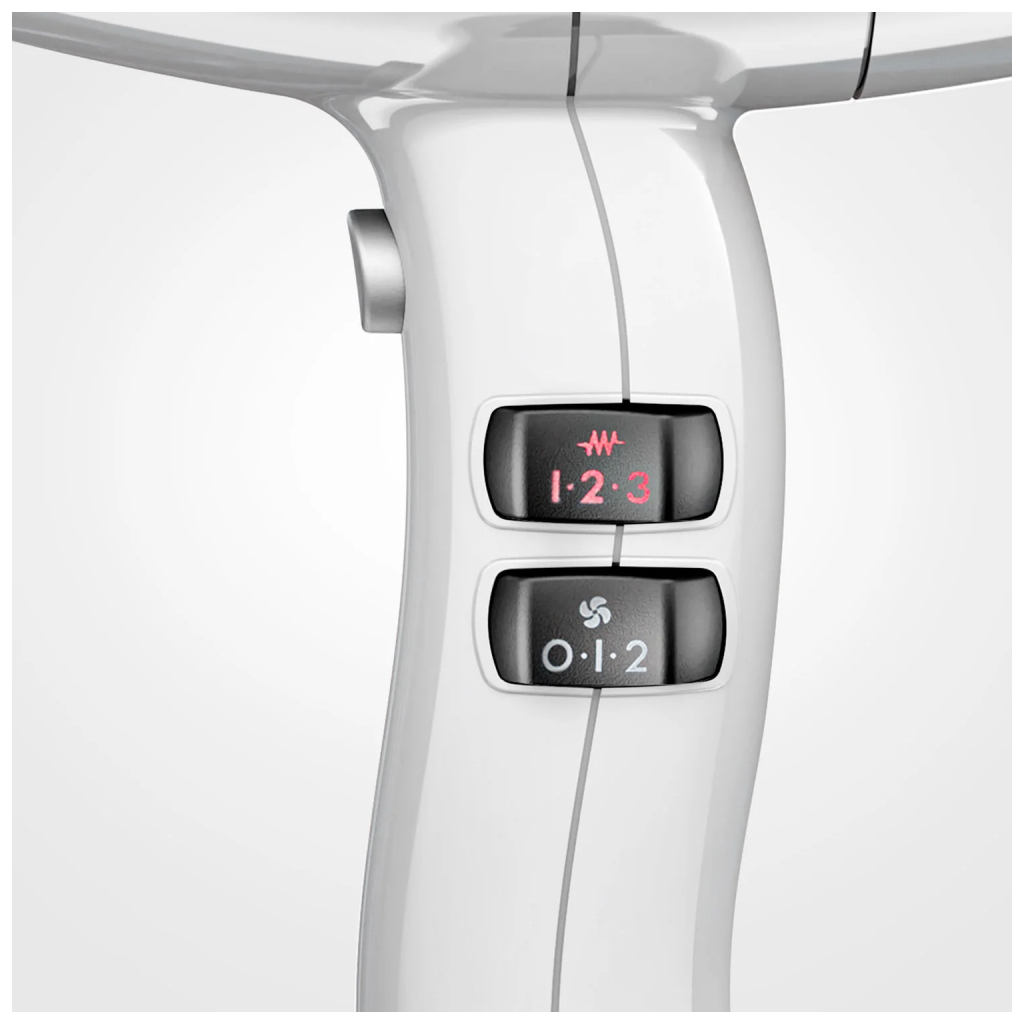 Особого внимания заслуживает дизайн этого фена: элегантный белый цвет в сочетании с эргономичной ручкой и удобными переключателями делают его стильным аксессуаром в вашем арсенале. Этот фен объединяет в себе инженерное совершенство и эстетическую привлекательность.