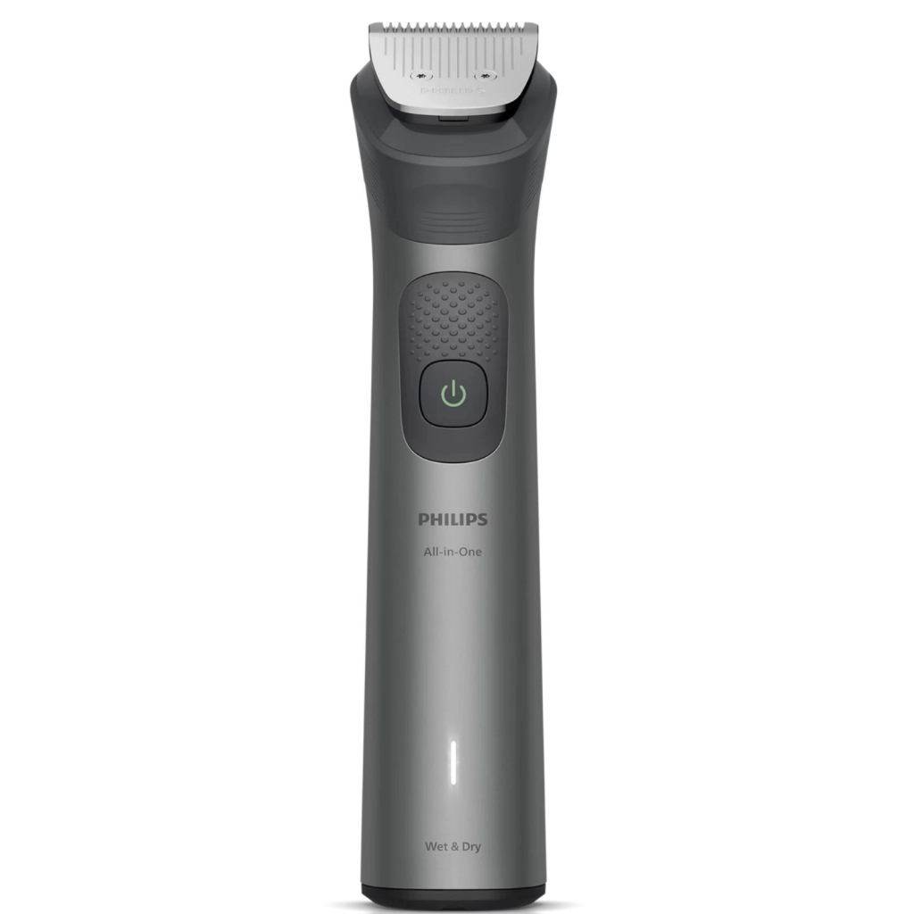 Это All-in-One триммер серии 7000, объединяющий 15 инструментов по уходу за бородой, волосами, телом, а также для точного оформления лица – включая насадки OneBlade, триммеры для носа/ушей и насадки для интимных зон. Система BeardSense адаптирует мощность до густоты волос (до 125 раз в секунду), обеспечивая равномерную и эффективную стрижку. Надёжные самозаостряющиеся лезвия из стали гарантируют длительную остроту без нужды в смазке.