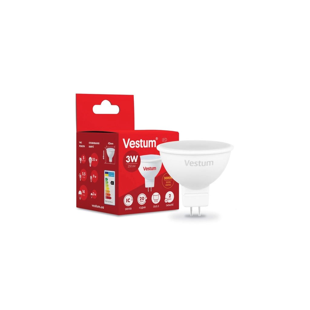 Vestum 1-VS-1502 мощностью 3 Вт дает 250 лм. Потребляя в разы меньше электричества, чем лампы накаливания или люминесцентные лампы, оно дает такое же количество света и прослужит в несколько раз дольше.