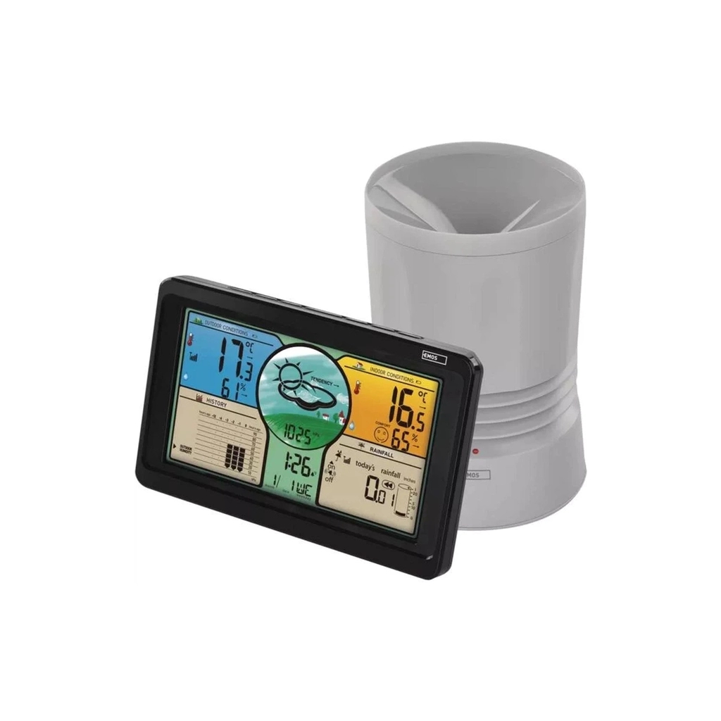 Беспроводная метеостанция E8670 от чешского производителя EMOS. Метеостанция с четким цифровым дисплеем предоставляет актуальную информацию о текущем времени, дате, температуре, влажности, атмосферном давлении, уровне осадков, и прежде всего о прогнозе погоды и о его тренде, доступный на следующие 12-24 часа.