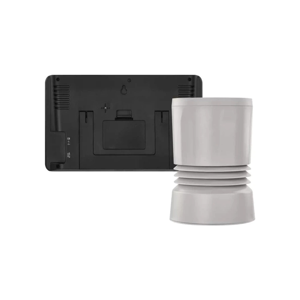 Одно из самых больших преимуществ этой метеостанции — цветной дисплей и сенсор измерения уровня осадков. Дисплей может работать как от батареек, так и от сети. Метеостанция имеет механические кнопки для быстрой и удобной навигации.