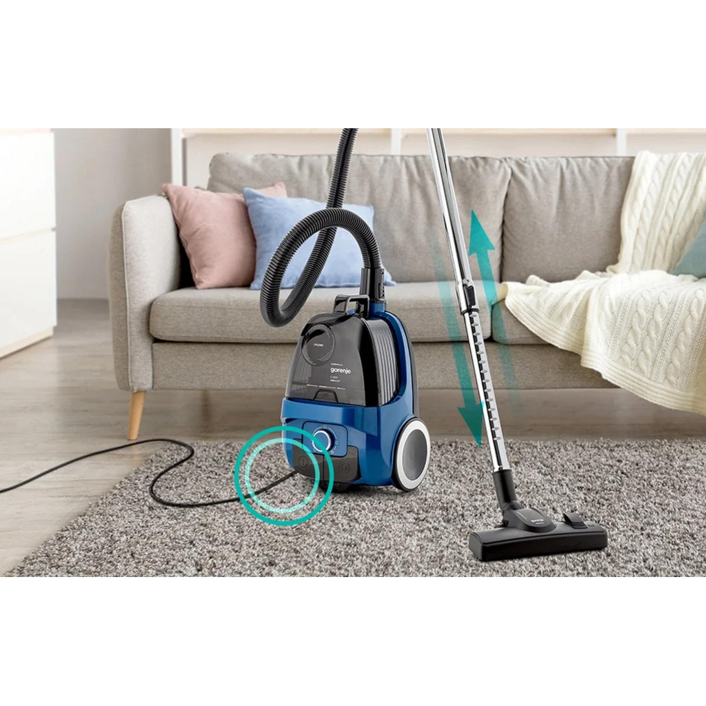Пылесос AIRDEEP оснащен мощным двигателем 2200 Вт и обеспечивает силу всасывания 330 Вт. Контейнер объемом 3,3 л позволяет удобно собирать пыль без использования мешков. Для удобства предусмотрены телескопическая металлическая трубка, поворотная ручка и система Active Bumper. Модель оснащена резиновыми колесами, защитой от перегрева и радиусом действия 9 м для комфортной уборки. Характеристики