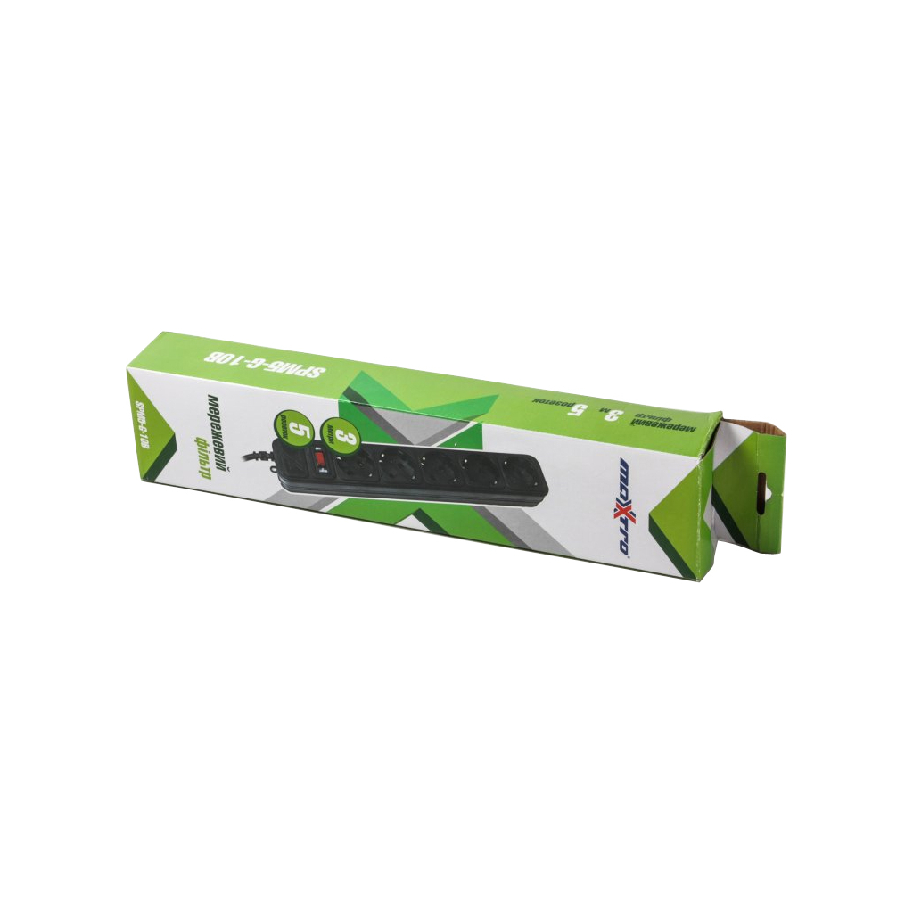 Сетевой фильтр питания MAXXTRO SPM5-G-10B чорний, 3 м кабель, 5 розеток (SPM5-G-10B) - это надежное устройство, которое защитит компьютерную и офисную технику от помех, перегрузок и короткого замыкания. Корпус выполнен из ударостойкого пластика и имеет сетевой кабель и вилку евростандарта, а также 5 универсальных розеток c заземлением (Euro). На фильтре установлен светодиодный выключатель и имеются отверстие для крепления к стене. Фильтр гарантирует моментальную реакцию на короткое замыкание и превышение максимально допустимой мощности. Характеристики