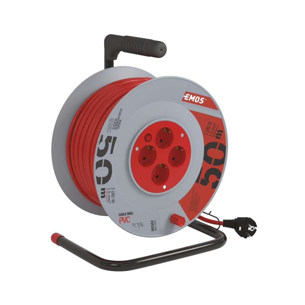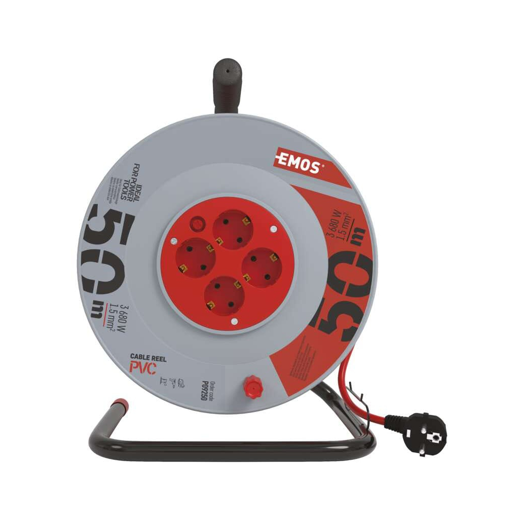 Удлинитель на катушке 50 м EMOS P09250Сегодня как никогда справедливо выражение «время — деньги». Поэтому не тратьте его на инструменты, которые не оправдывают себя. Выбирайте только то, что предлагает что-то большее. Удлинитель EMOS оснащён 4 розетками, термопредохранителем, тормозом катушки, барабаном из практически неразрушимого ABS-пластика (выдерживает случайные падения) и металлической рамой. При правильном обращении он прослужит вам долгие годы.