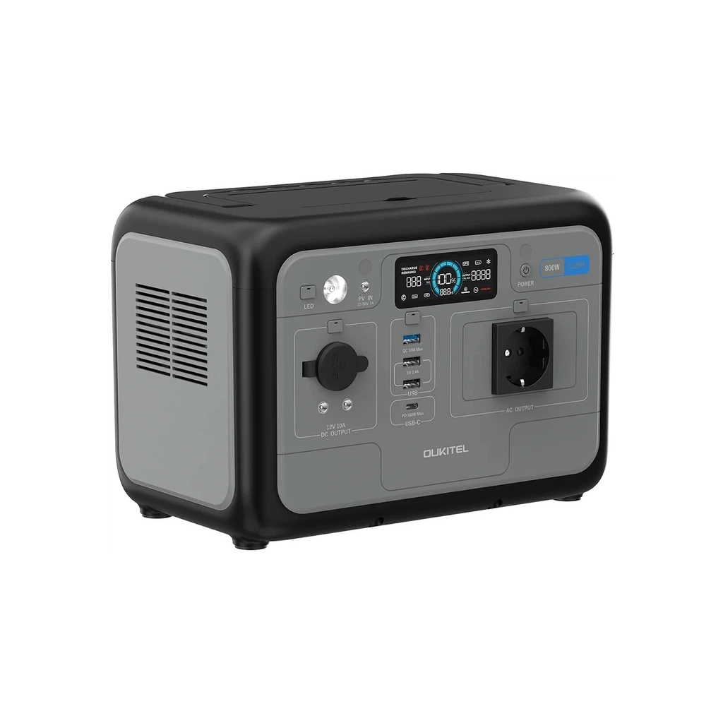 Зарядная станция Oukitel P800E 800 W 512 Wh Grey – мощная портативная зарядная станция емкостью 512 Вт·ч и суммарной мощностью 800 Вт Надежное решение для питания бытовых приборов при отключении электроэнергии Оснащена розеткой переменного тока, USB-A, обеспечивающий широкие возможности подключения разных устройств