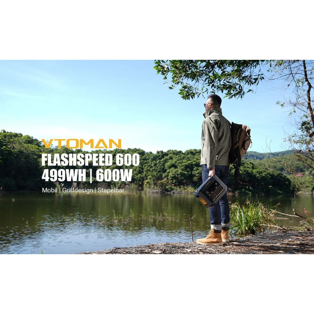 - Высокая мощность и ёмкость: VTOMAN FlashSpeed 600 обладает выходной мощностью 600 Вт и ёмкостью 499 Вт·ч, с максимальной пиковой мощностью 1200 Вт, а также оснащён технологией V-Beyond.