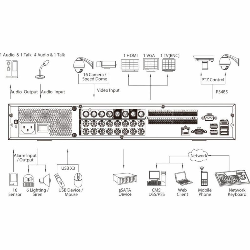 DH-XVR7416L с различным функционалом работает с 16 аналоговыми с разрешением 1080P и 16 сетевыми видеоустройствами с разрешением 5 Mp.