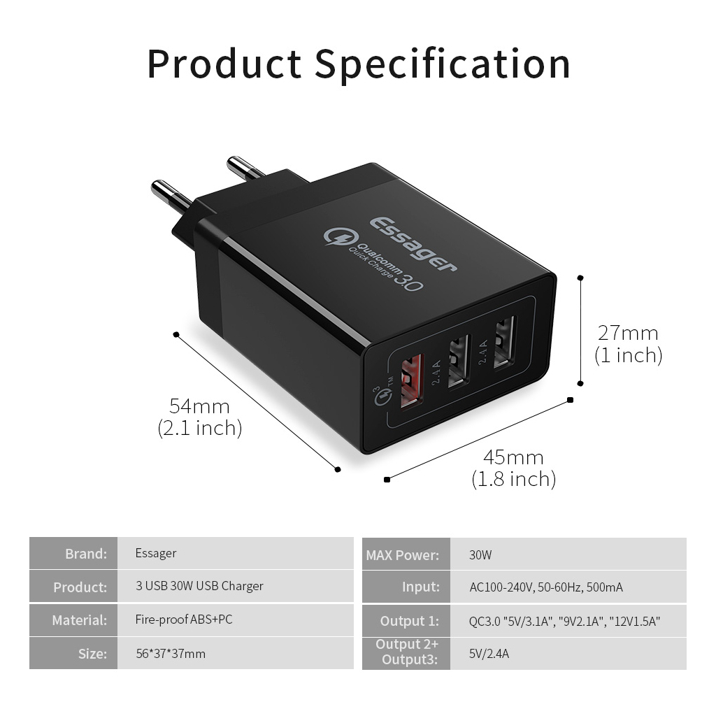 Essager Fangbo 3хUSB-A 2.4A - это не просто зарядное устройство, это стильный и мощный способ поддерживать ваши устройства в рабочем состоянии в любых условиях. Оптимизируйте свой повседневный опыт с Essager Fangbo и наслаждайтесь быстрой, удобной и безопасной зарядкой.