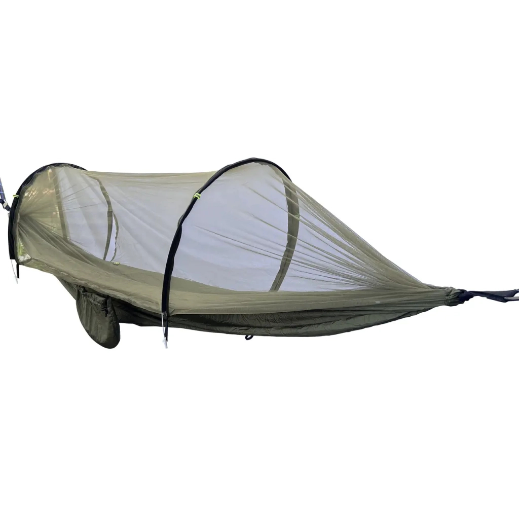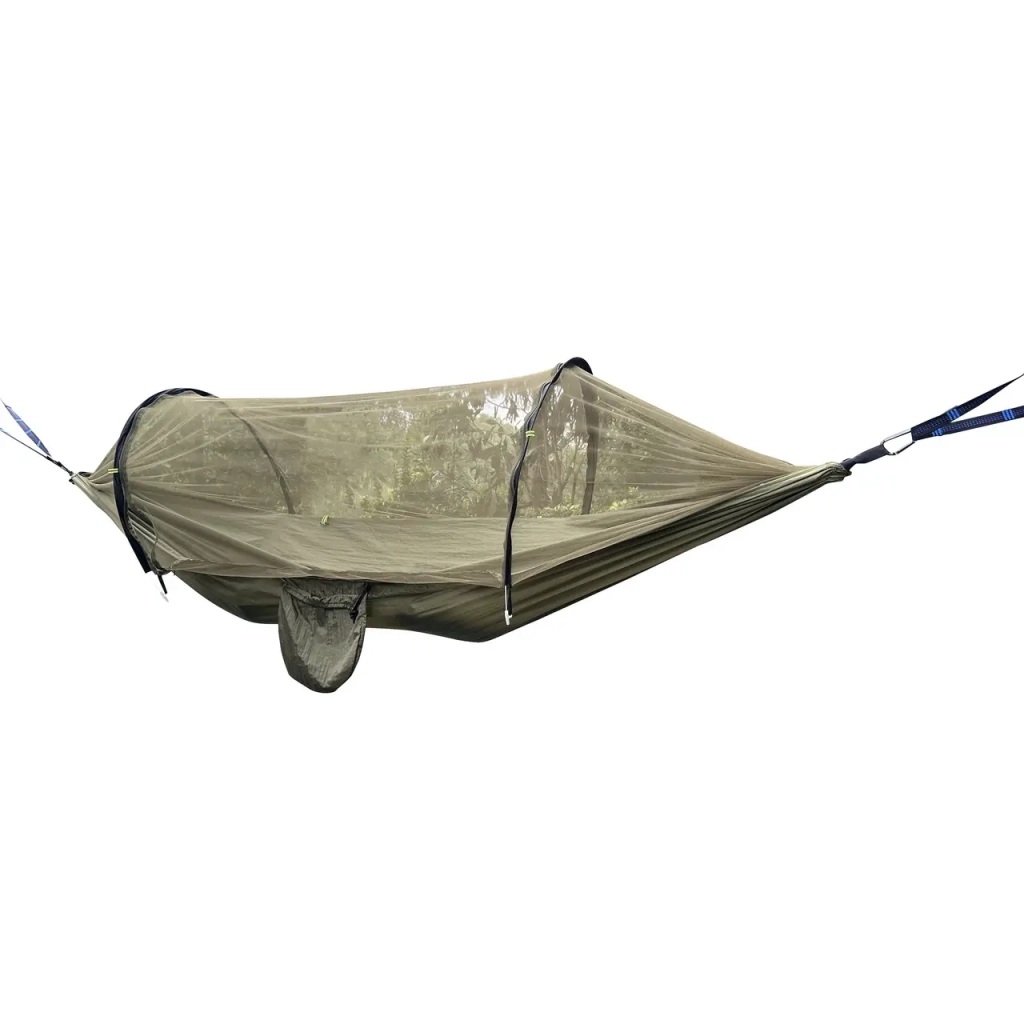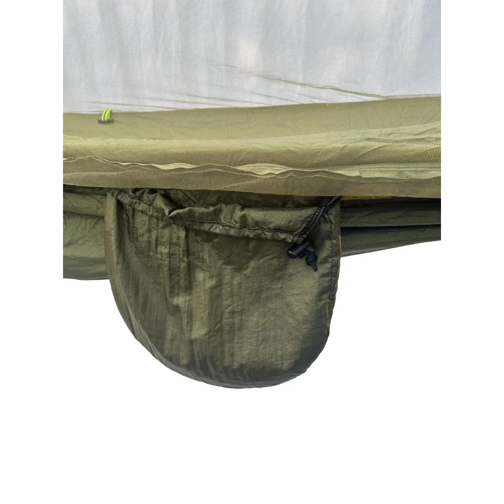 - Прочные стальные каркасные дуги обеспечивают стабильность конструкции, удерживая сетку в приподнятом положении и увеличивая пространство внутри гамака.