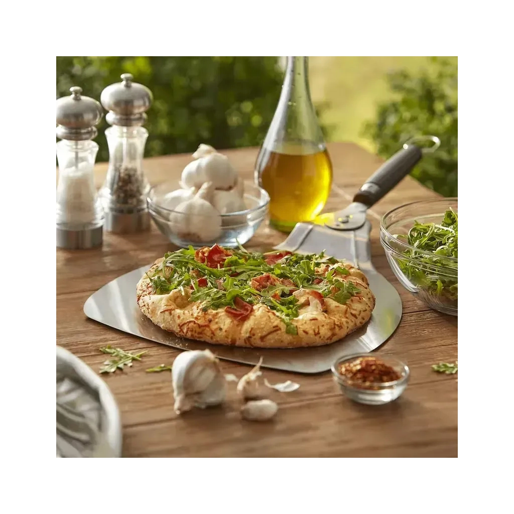 - С помощью лопатки из нержавеющей стали легко поднять пиццу и перенести ее на гриль или стол- Складная ручка для экономии места хранения