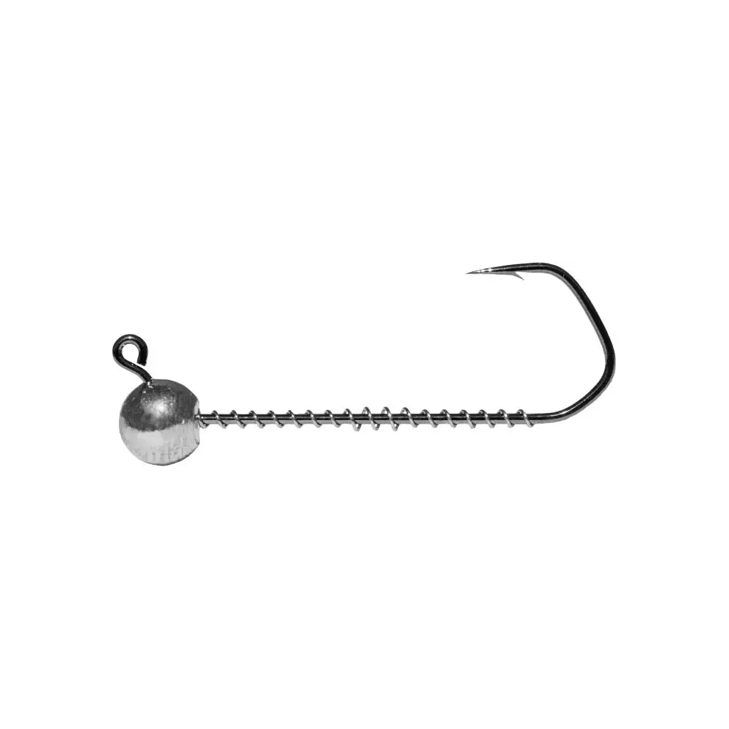 Свинцовое грузило имеет форму шара. Ушко джиг головки загнуто под углом 125°, это позволяет делать более плавную проводку при отрыве приманки от дна и опускании ее обратно. Острый крючок и загнутость ушка обеспечивают эффективные подсечки и надежное удерживание пойманного трофея.