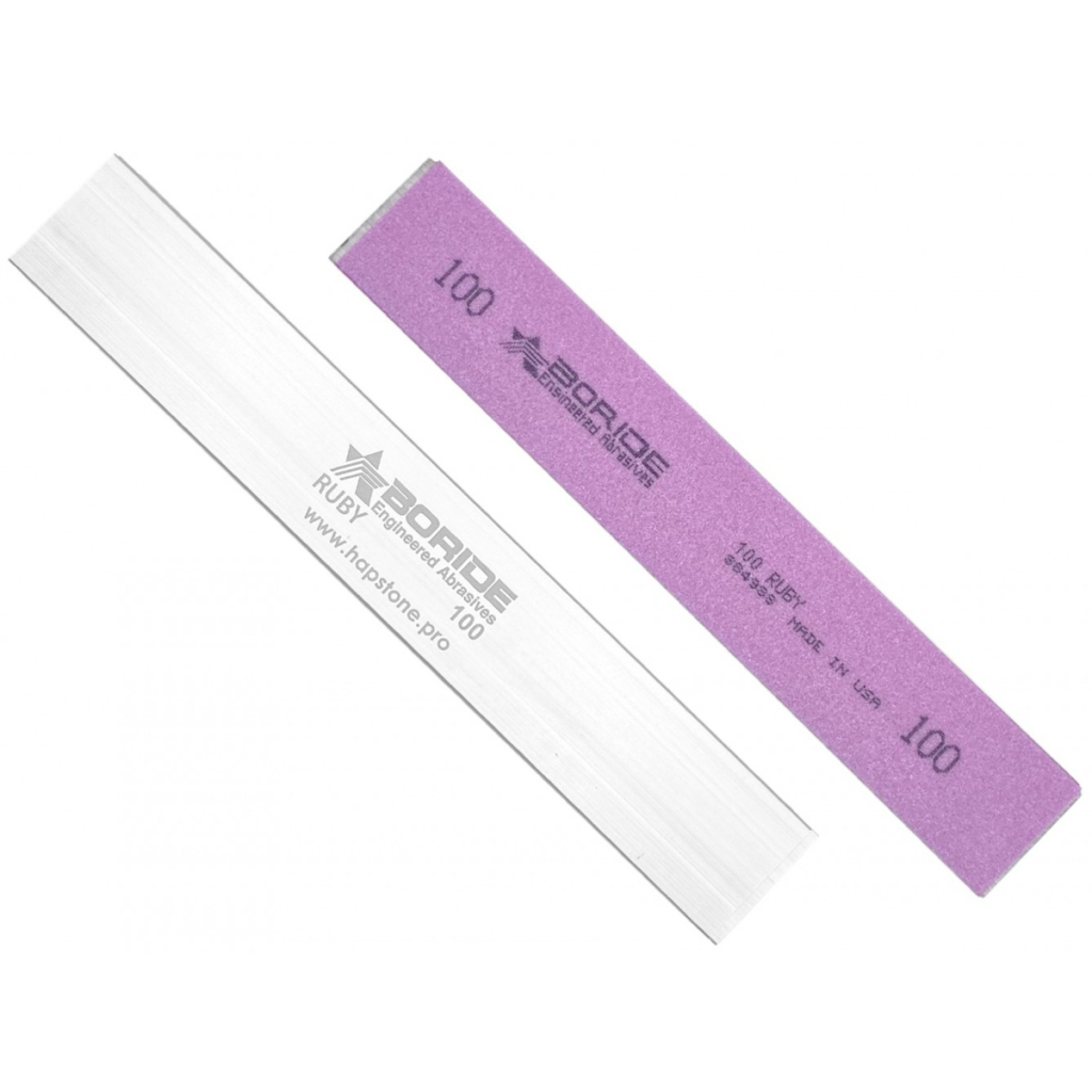 Камни серии Boride Ruby используются на обдирочном этапе обработки металла. В линейке зернистости Ruby присутствуют только обдирочные бруски от 60 до 220 грит. Абразивное зерно брусков серии Ruby – это легированный цирконием электрокорунд, связка достаточно мягкая.