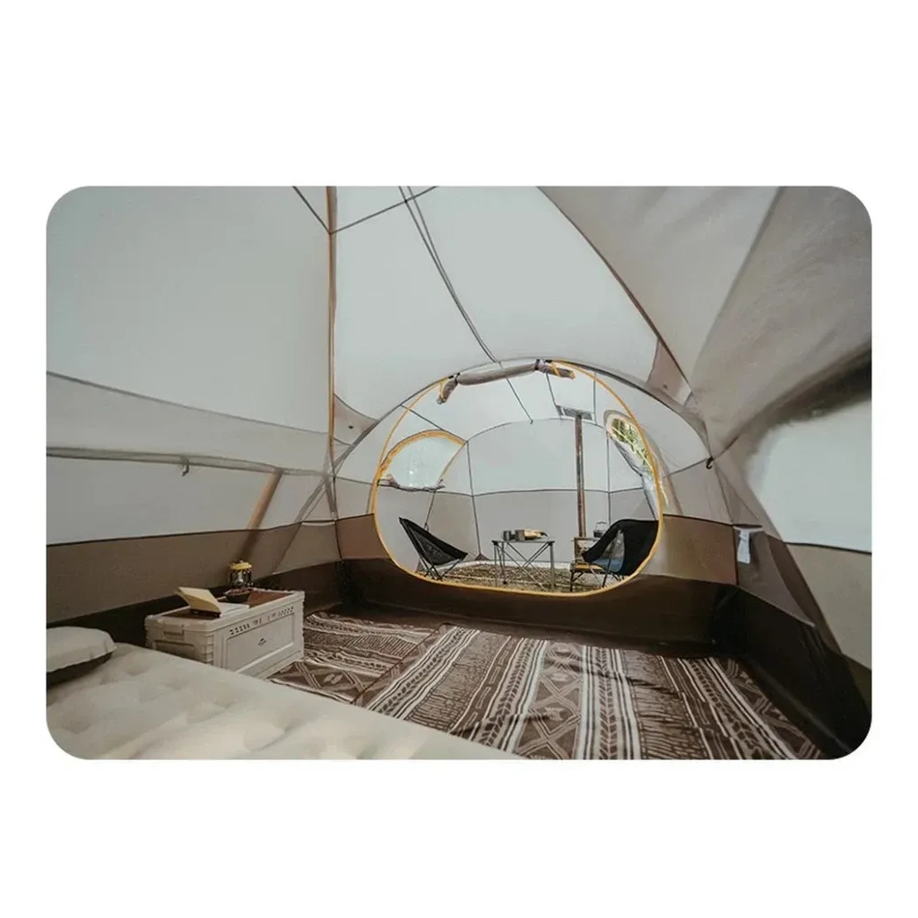Naturehike KOTA 6 — это просторная шестиместная палатка, которая подходит для всех 4 сезонов эксплуатации. Конструкцию можно адаптировать под текущие потребности, используя 2 слоя отдельно: внутреннюю палатку для комфортного отдыха в очень жаркую погоду, а тент для укрытия от осадков и прямых солнечных лучей. Площадь внутреннего пространства достигает 12.7 м², поэтому палатка оптимальна для сна 6 человек и даже может вместить 8 отдыхающих для совместного ужина и вечеринки большой компанией. Потолок высотой 2 м позволяет перемещаться в полный рост. Пространство разделено на зоны для хранения снаряжения, сооружения мини-гостиной и спальни, чтобы вы могли обустраивать место для отдыха с максимальным комфортом.
