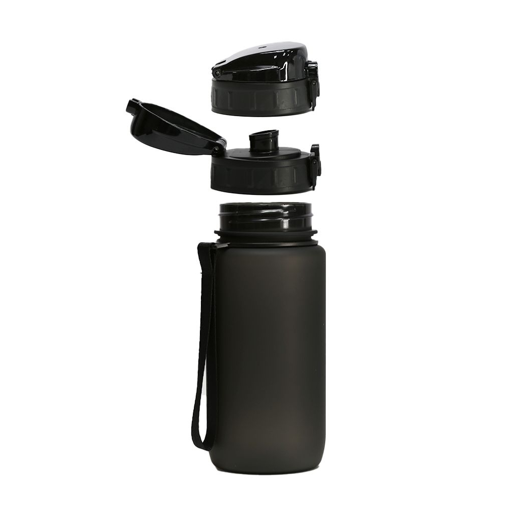 Крышка оснащена кнопкой с фиксатором, что предотвращает случайное открытие при транспортировке. Пластиковый носик с откидной защитной крышкой обеспечивает гигиеничность и удобство во время использования. Матовое покрытие корпуса обеспечивает приятное тактильное чувство и стойкость к царапинам. Оснащена прочным встроенным нейлоновым ремешком для комфортного ношения. Благодаря широкому горлышку бутылка легко моется и быстро наполняется.