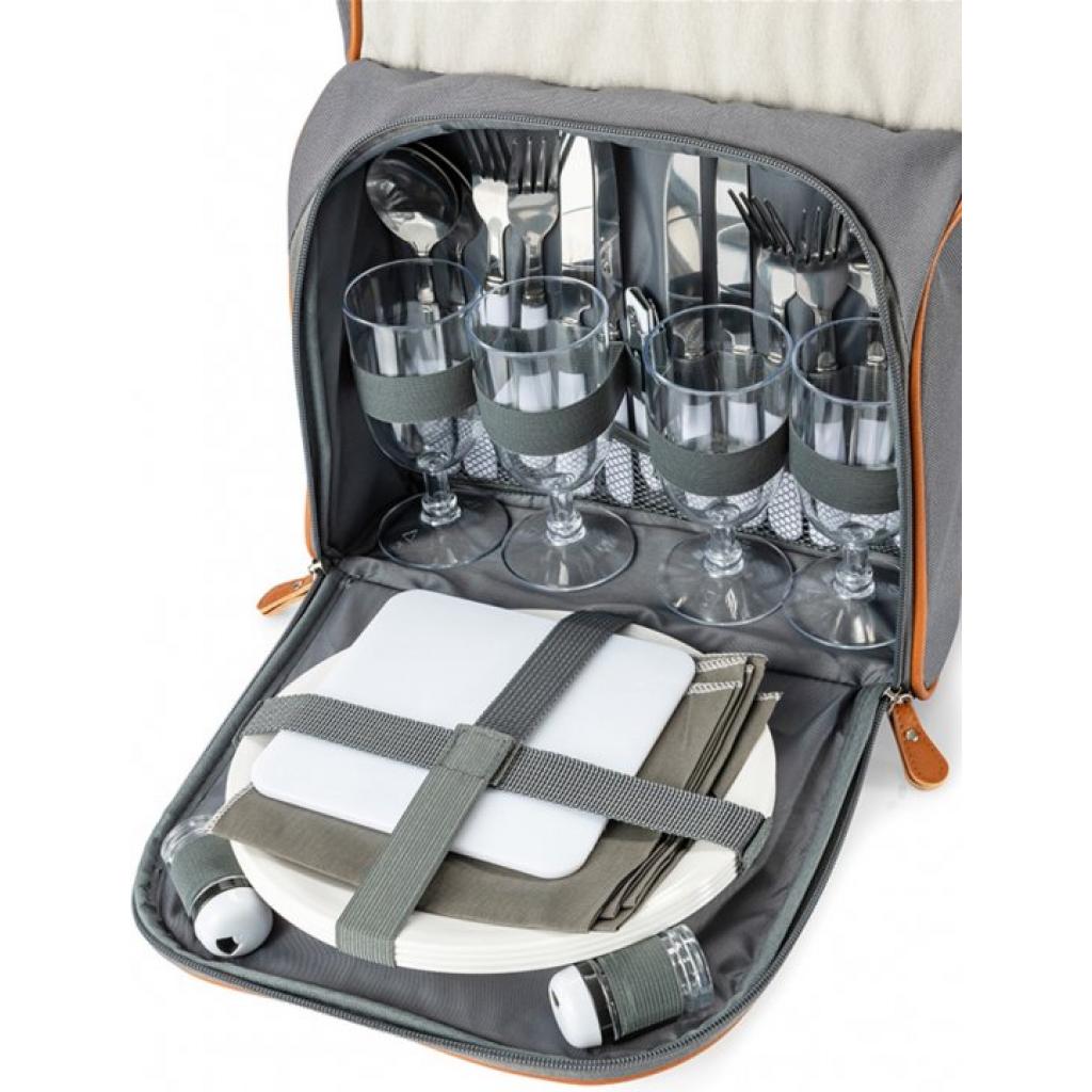 «Beverly» выполнен из плотного практичного материала, поэтому прослужит вам не один сезон. Он оптимальный по вместимости и размерам. Можно спокойно обойтись без дополнительных сумок, ведь все необходимое поместится в набор. Для ваших блюд и напитков есть специальный изотермический отдел, который позволяет длительное время сохранять нужную температуру.