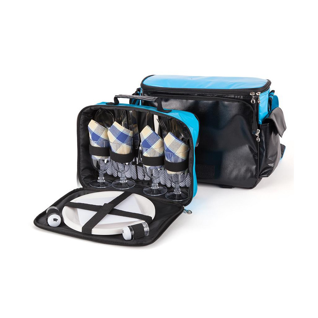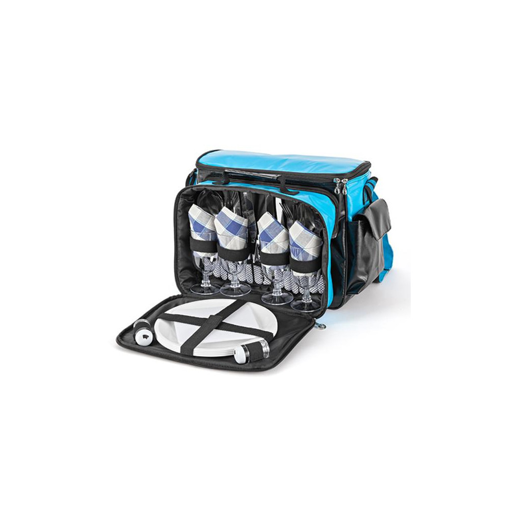 Компактный пикниковый набор вмещает в себя необходимую посуду и столовые приборы.