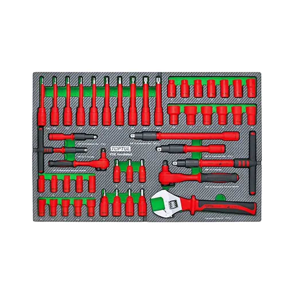 Набір інструментів Toptul ізольовані VDE 48 шт. в ложементі (GED4863) — це бездоганний вибір для професіоналів автомобільної сфери, яким потрібна надійність та безпека під час виконання ремонтних робіт. Цей набір, розроблений з вищими стандартами якості, забезпечує ідеальний баланс між функціональністю та довговічністю, гарантуючи ефективність в будь-яких умовах.Цей автомобільний набір інструментів оснащений самими необхідними компонентами для складних завдань. У комплекті містяться 48 інструментів, кожен з яких виконаний з високоякісних матеріалів, стійких до корозії та зношення. Вони ідеально підходять для виконання робіт під фізичним і електричним навантаженням завдяки ізоляції VDE, що забезпечує безпеку навіть під високими напругами.