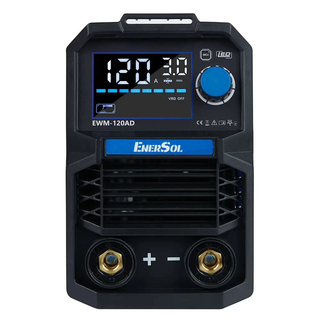 ✔ Зварювальні апарати інвертнорго типу ТМ EnerSol мають такі переваги: Комфортне налаштування та контроль робочих параметрів завдяки інформативному LED-дисплею на передній панелі.